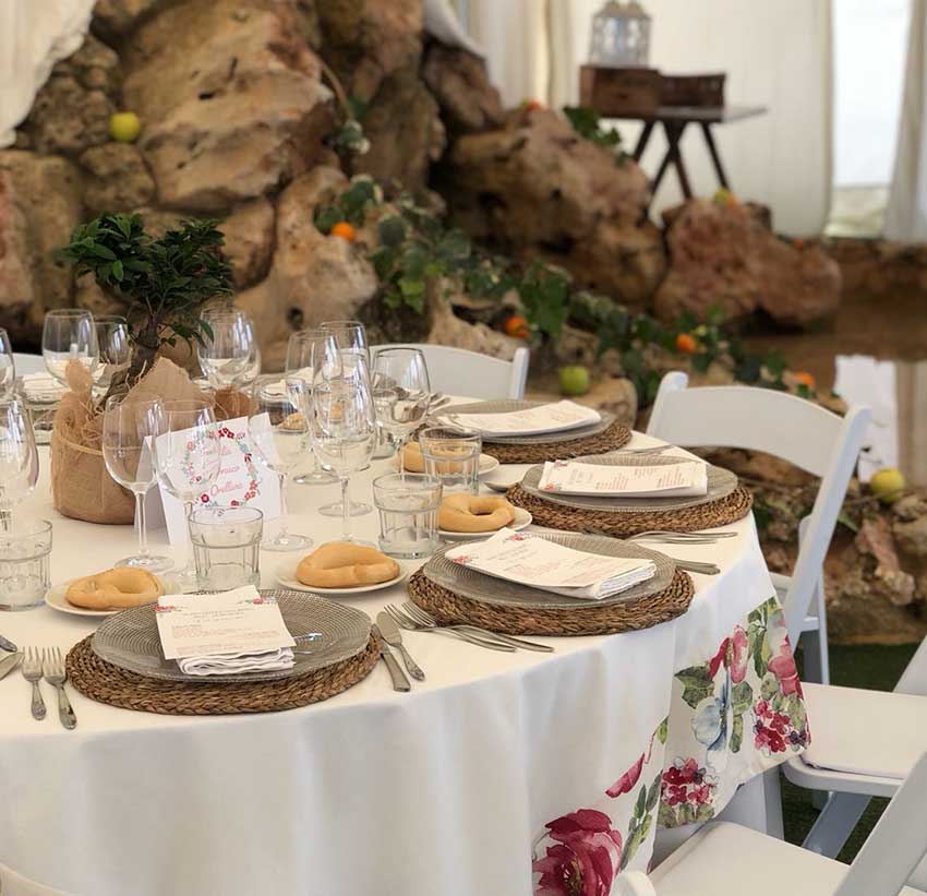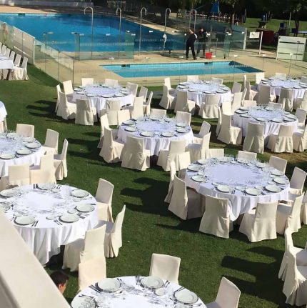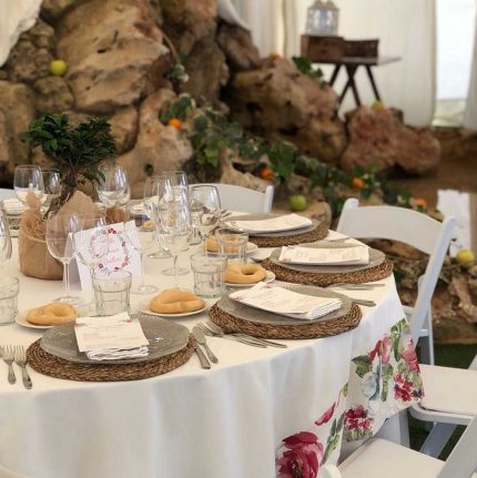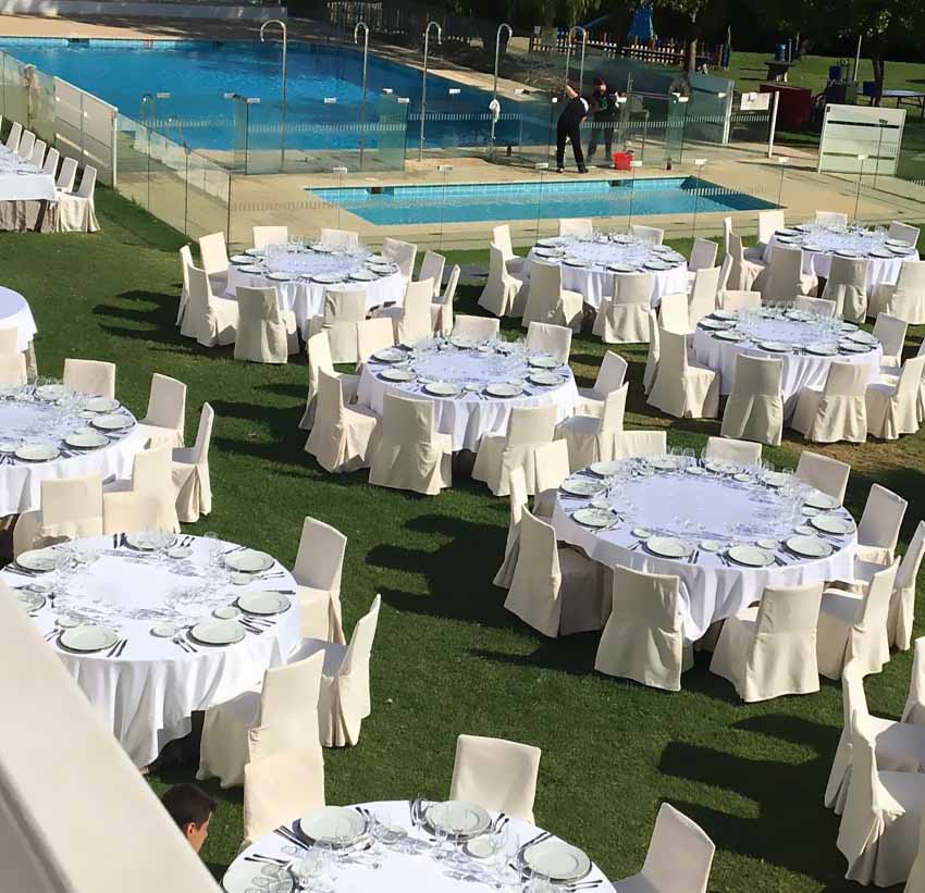 Mesas, sillas, vajilla, cristalería, cubertería, mantelerías… Estamos al día de las nuevas tendencias en montajes de banquetes. Si sois unos novios tradicionales podéis optar por montaje de mantelería en mesas redondas pero, si quieres innovar, una de las últimas tendencias es vestir las mesas sin mantel, con un simple camino de mesa colocado en el centro, donde coloques la decoración floral, velas o lo que decidáis, ¡será suficiente!