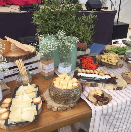 ¿Qué te parece ¿qué te parece si en el cóctel de bienvenida ponemos un buffet de quesos? Seguro que les encantará a vuestros invitados. Deliciosas variedades de quesos, una propuesta novedosa y original que ofrecer a vuestros amigos y familiares y salir un poco de lo tradicional que solemos ver en otros eventos. ¡Sorprenderás a todos!